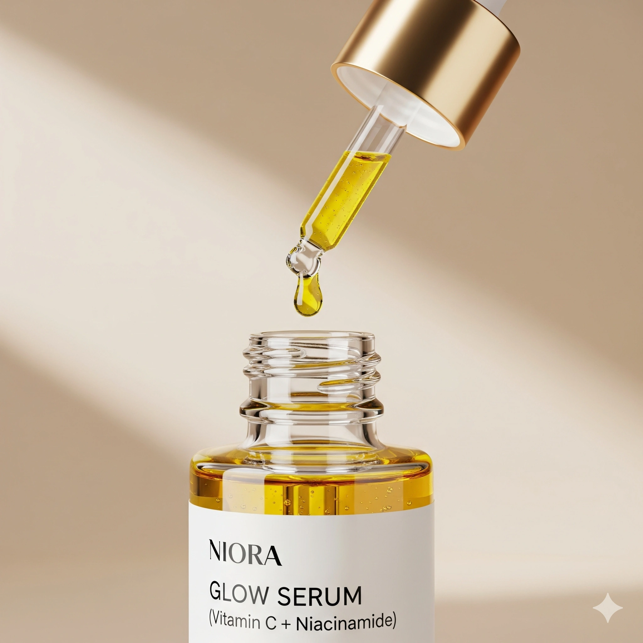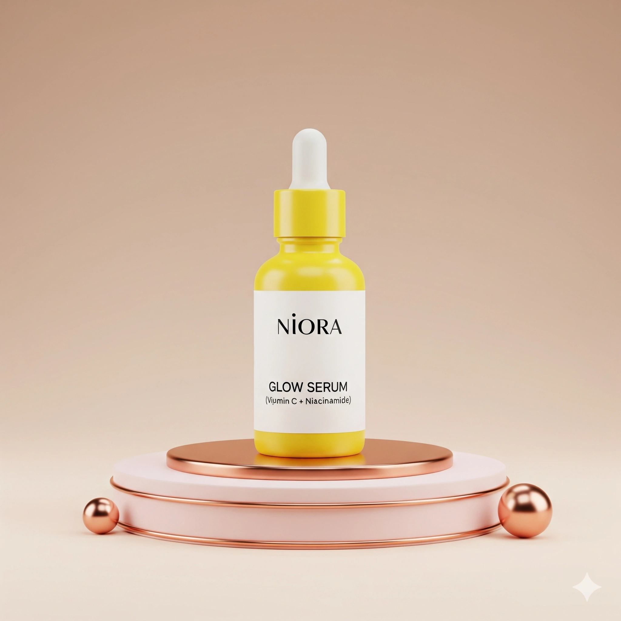 This is your glow-in-a-bottle. Niora’s Glow Serum is a powerful blend of 15% Vitamin C, Niacinamide, and Hyaluronic Acid — formulated to brighten dull skin, reduce dark spots, and fight early signs of aging.